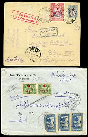 o/ Turkey, Ottoman Empire Post Offices, 7 covers and numerous adhesives, noted Iraq, Lebanon (Zor and Behamadoun), Bosnia & Herzegovina, Epirus, Syria, Greece, Serbia and Albania, most unusual group, generally Fine to Very Fine. Estimate $400-600.
