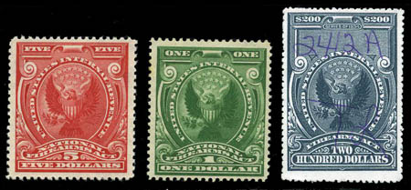 /o U.S. Back of the Book Collections, Firearms Revenue collection. #RY3, RY5 o.g. plus RY8 used, Fine. Scott $265. Estimate $70.