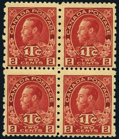 Canada, War Tax mint blocks, #MR1-2, 4-5. N.h. (bottom), l.h. (top), Fine to Very Fine. Scott $890+. Estimate $240.