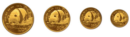 Worldwide Coins, China (People's Republic), 1987 Gold Panda set. 1 oz, ½ oz, ¼ oz, and 1/10 oz. in holder, Mint State 60. Estimate $3,000.