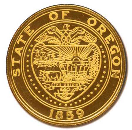 U.S. Coins, State of Oregon gold Medal. 999 one troy oz. in case, minted in 1980s, Mint State 60. Estimate $1,650.