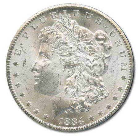 U.S. Coins, 1884-CC Morgan Dollar in GSA holder. Missing box and papers, Mint State 60. Estimate $120.