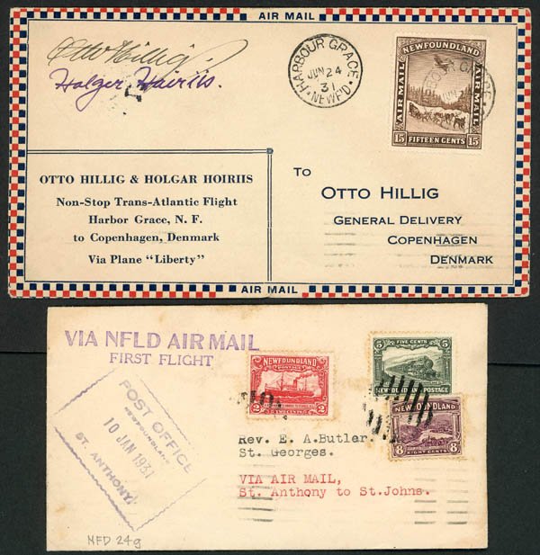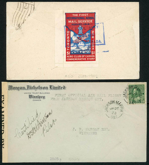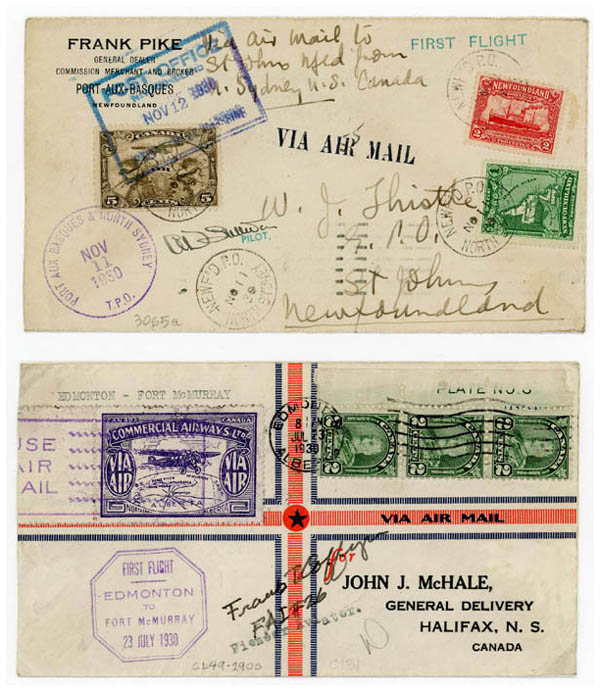 Canada, Large Early Flight Collection, 1100 mostly cacheted, incl. Semi-Official, special and governmental flight and stages, about 35 Newfoundland, most identified by AAMC numbers, in 2 binders and 5 slipcased cover albums, of special note are two Pioneer flight covers, a 1919 Aero Club of Canada flight, Toronto-N.Y. race (AAMC #20), and two 1924 Estevan-Winnipeg covers (AAMC 34), one with special stamp, other signed, very nice group, mostly Very Fine. Estimate $4,000-5,000.