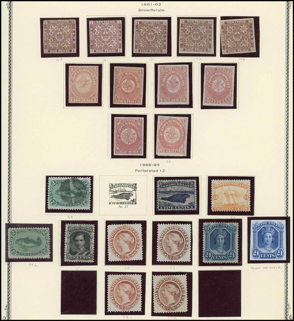 Canada, and Newfoundland Mint and Used Group, o.g. or without gum, Collection on Scott pages with typical range of used on the early issues then better mint starting in 1930's with #176-77, 217-27, E1-8, etc. and a nice range of mint Provinces o.g or unused with New Brunswick 6-11 (#7 used), solid Newfoundland incl. 15A//23, 24//31, 32//36, 41//59, 61-74, 115-26, 145-59, 172-82, 212-25, C6-8, C9-11, etc., a nice collection please inspect, Fine. Estimate $600-800.