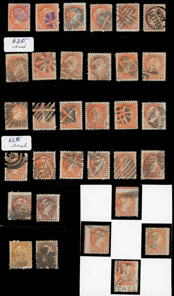 Canada, Small Queens Used Collection, few hundred ½¢ to 3¢ on album pages, stockpages or #101 cards, many nice cancels incl. Way Letter, geometrics, socked-on-the-nose, some pairs or larger, generally nice colors, few 3¢ copper red, two o.g. 3¢, condition varies. Estimate $150-200.