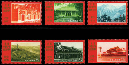 China; People's Republic, 1971, 4f-22f Chinese Communist Party 50th Anniversary complete, #1067-1075. Ungummed, #1074a with tiny inclusion, Fine to Very Fine. Scott $730. Estimate $250.