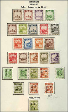 Manchukuo, Complete Mint Collection, o.g. on album pages, clean lot, Fine to Very Fine.