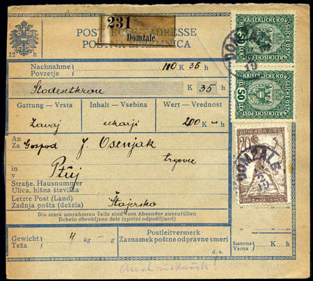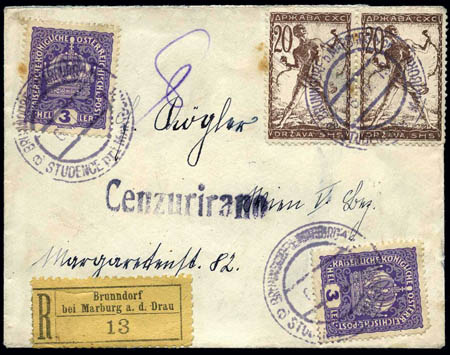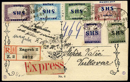 Yugoslavia, and Related Postal History, 185+ cover, cards or money orders, pre-Independent issues from various countries, early issues used in combination with Austrian issues, Bosnia, Slovenia, "Chainbreakers", Dues, censored, registered, Trieste Zone B, WWII government in exile, Croatia, WWII Occupations, very interesting group, generally Fine. Estimate $400-600.
