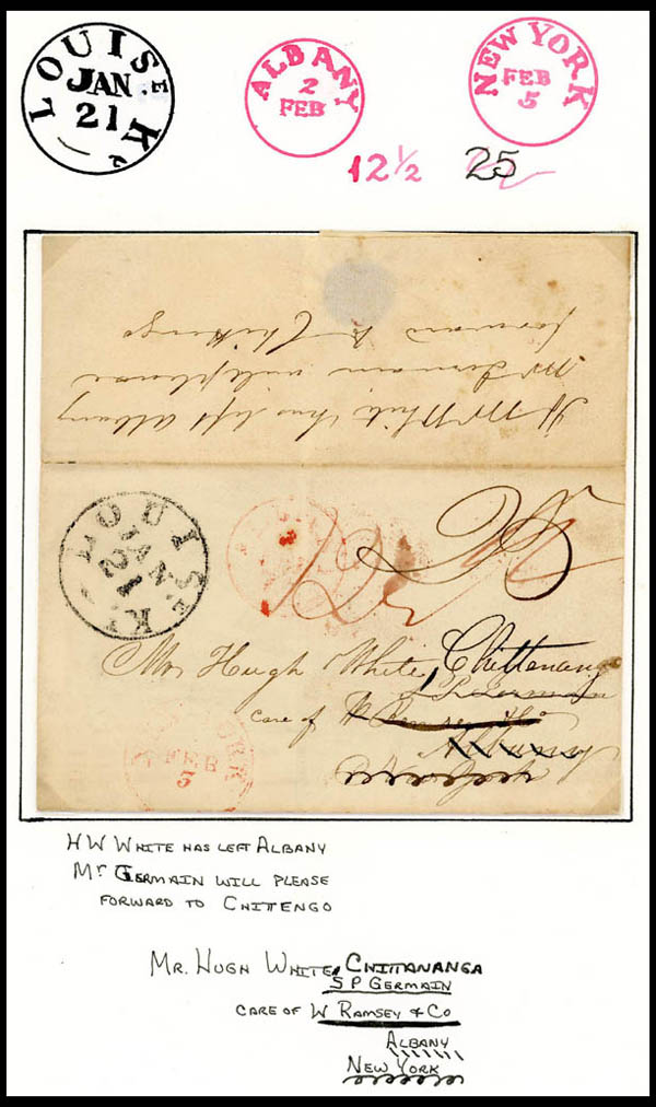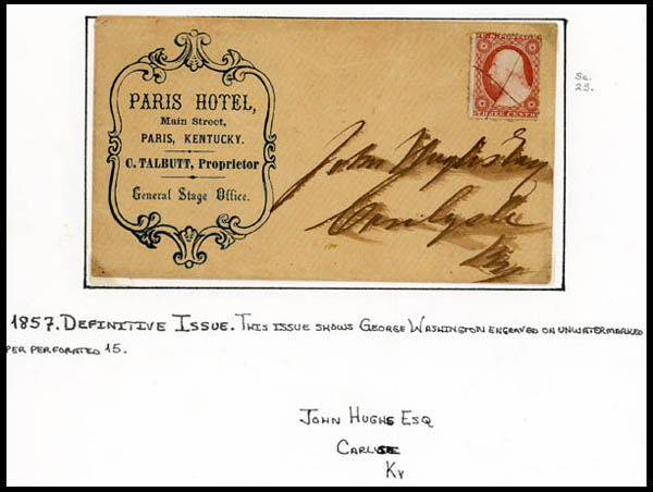 U.S. Covers by State, Kentucky, 80+ Items Exhibit, illustrated on homemade pages, starting with 21 stampless with Bell 1823, balance 3¢ adhesives or Stationery 3¢ usages, later with postal cards and 20th Century with postcards, mostly to 1901 period with just a few later, reasonable condition, cute collection. Many transcribed. Estimate $400-600.