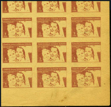 Turkey, Postal Tax, 1966 trial color proofs imperf sheet of 100.