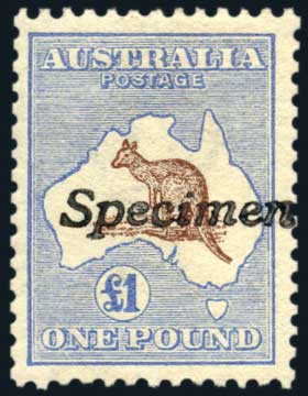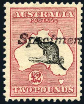 Australia, 1913, 10/- to £2 Specimen Handstamp, SG #14s-16s, slightly toned o.g., Fine to Very Fine.