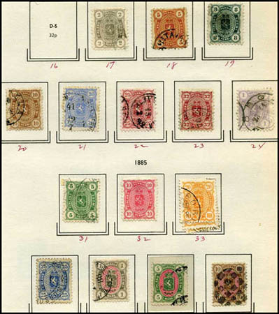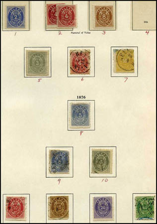 Foreign Collections, 3 volume Scandinavia used collection. On blank pages to 1975, separate volume for Norway starting with #1, mostly complete used to 1967, mint after that, incl. back of the book, Sweden (weakest) with Gustav coils, later booklets, Finland with excellent early "teeth" issues, #176FK imperf pair, Semis complete mostly mint, Greenland complete mint or used, Iceland complete except #4, 33, 33A, 53, 56-57, 60-64, 65C, and incl. #30 used, few dups, later complete sets mint, missing few Airs, Officials complete mint or used except #O1, 1930 set complete mint, 19th century slightly mixed condition, 20th century mostly fine to very fine, fresh throughout with only occasional fault. Estimate $4,000.