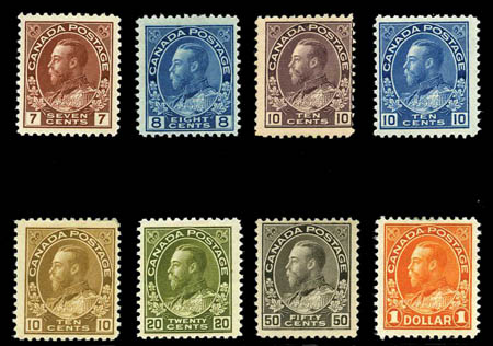 Canada, 1912-25, 1¢-$1 "Admiral" complete, #104-122.