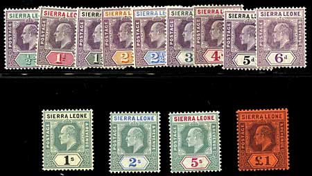Sierra Leone, 1904-05 Edward VII Set, SG #86/98, o.g., Fine to Very Fine.