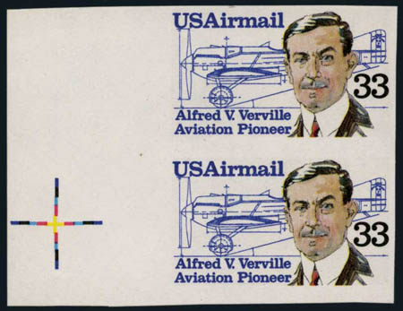 U.S.; Airpost, 1985, 33¢ Verville, imperf, pair, #C113a.