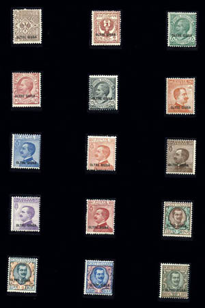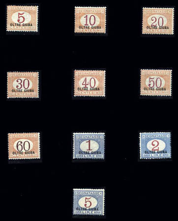 Oltre Juba, Complete Mint, N.h. to o.g., n.h. incl. #16-20, J1-10, Money Order Sassone #1-6 o.g. cat. €450, Fine to Very Fine lot. Scott $2,400 + £450. Estimate $800-1,000.